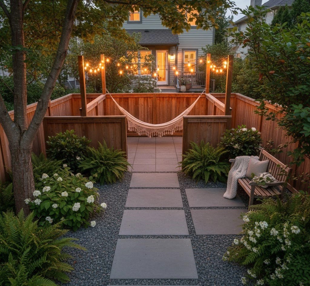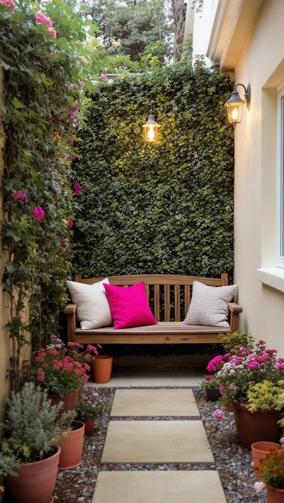 This is brilliant for making a patio feel secluded! The tall, lush greenery acts as a beautiful, natural privacy screen. The blend of textures—stone, wood, and all that foliage—is super calming. If your space is overlooked, try strategically placing tall planters or a vertical garden to create your own little hidden world. It’s instantly more tranquil and intimate.