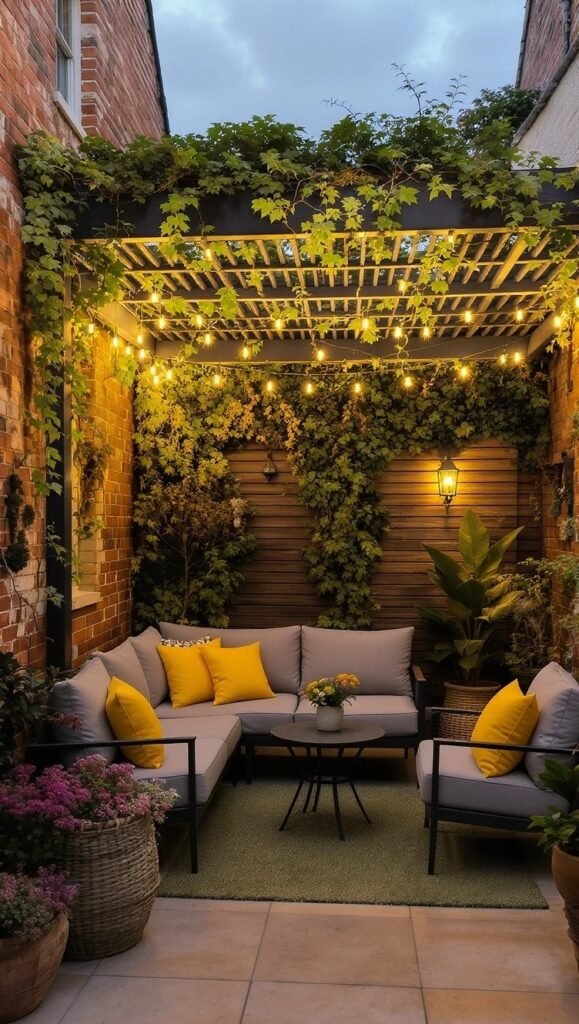 This image highlights the importance of shade. An umbrella or small canopy isn’t just for sun protection; it helps create a feeling of enclosure, making the area feel more like a sheltered sanctuary. It keeps the furniture cool and helps define the space vertically, drawing your eye up and adding a touch of elegance to the seating area.