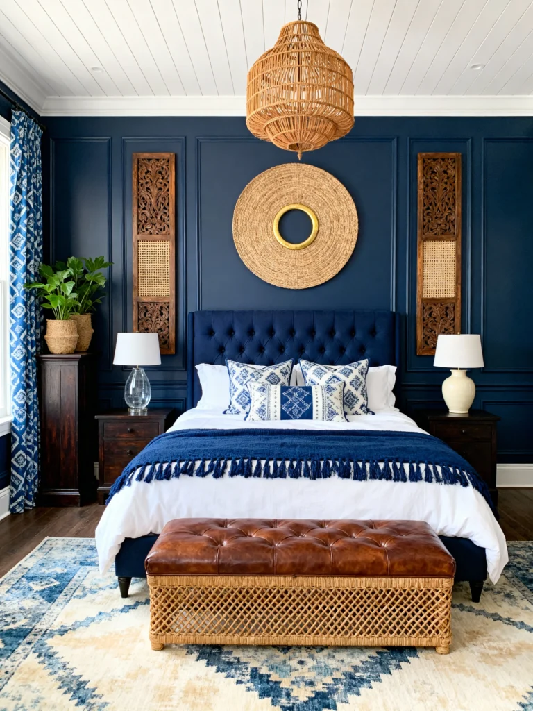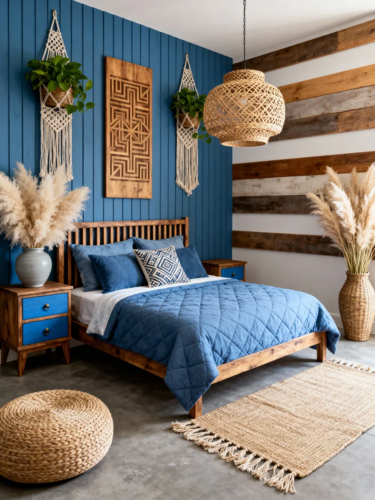 If you’ve been scrolling through Pinterest lately, you’ve probably noticed that moody blues and bohemian textures are having a major moment. There is something so incredibly grounding about a deep indigo wall paired with the warmth of natural wood and woven accents.