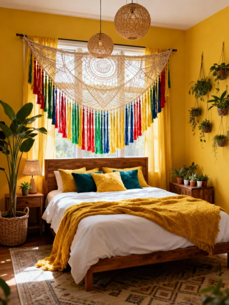 10 Yellow Macrame & Plants for Boho Bedroom Bliss