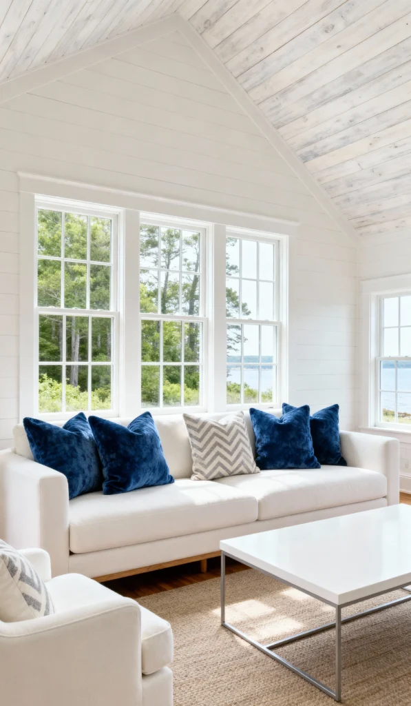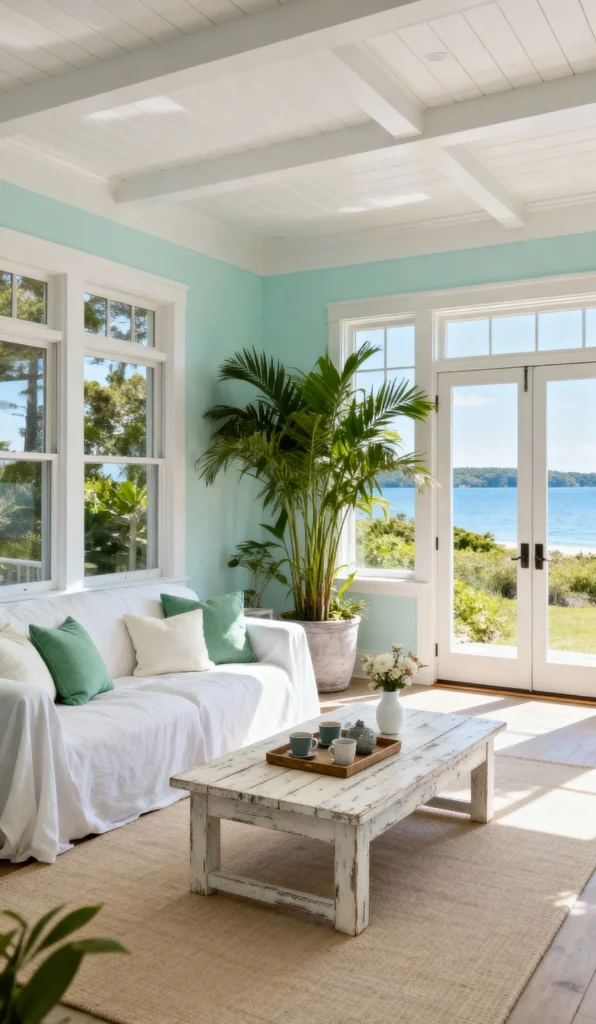 Fellow design lover! Ever feel like your home could use a little vacation vibe? Well, you’re in luck! I’ve rounded up some gorgeous inspiration that perfectly captures that breezy, relaxed feeling of being by the sea. From crisp whites and deep navy blues to pops of serene seafoam green, these spaces prove that coastal style is versatile, elegant, and totally inviting. Whether you prefer a refined, Hamptons-esque look or something more bohemian and organic, there’s an idea here for you. Dive into these images with me and let’s get inspired to bring a little bit of the ocean into our living rooms!