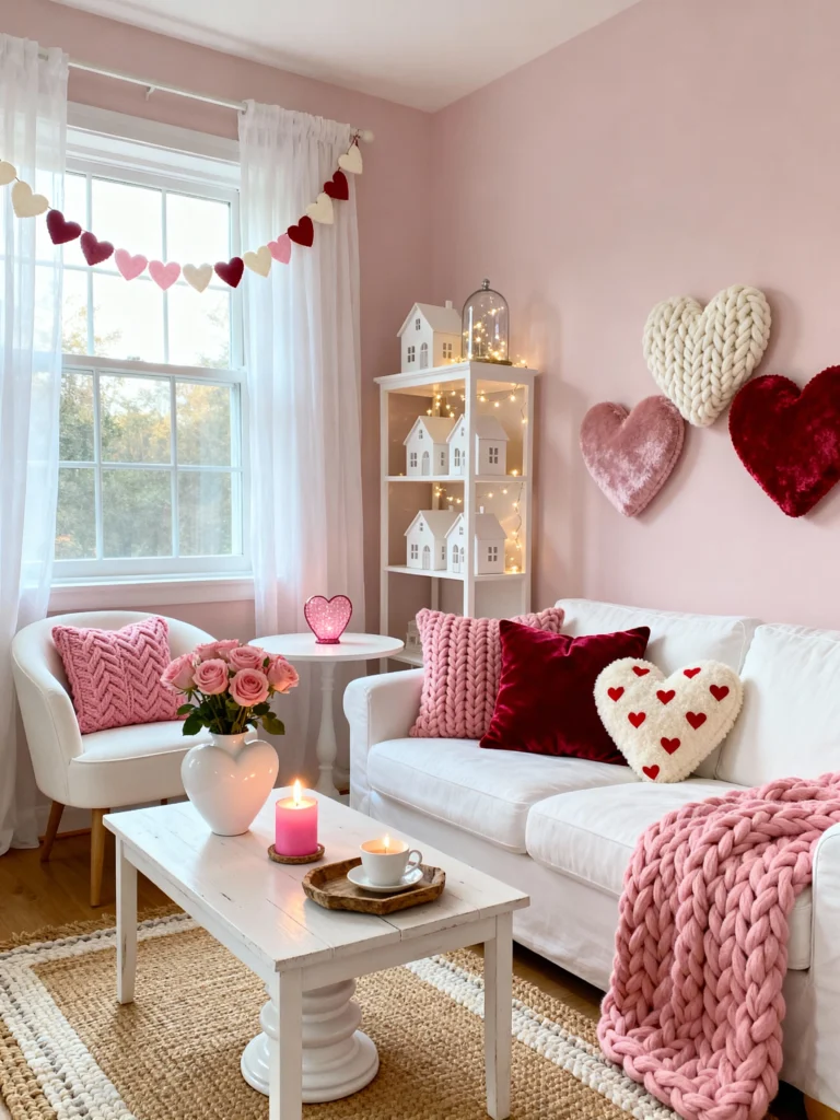 I love the little white houses on the bookshelf—it gives it a “village” feel. This is a great example of how to do Valentine’s decor in a way that feels bright, airy, and very lived-in.