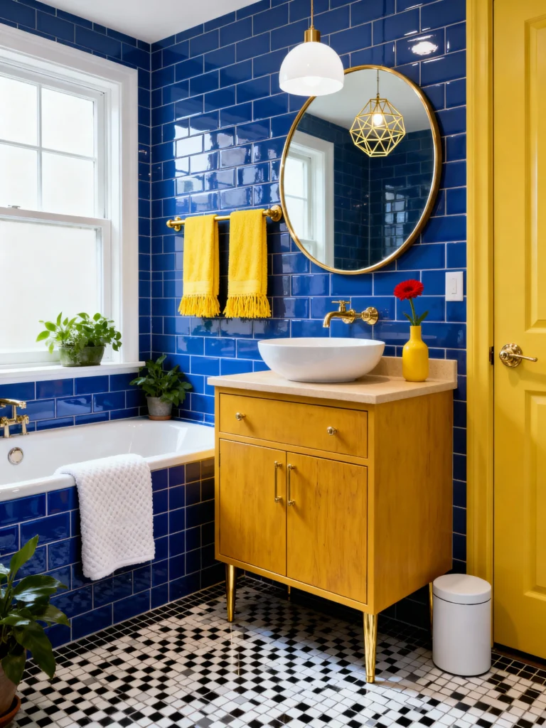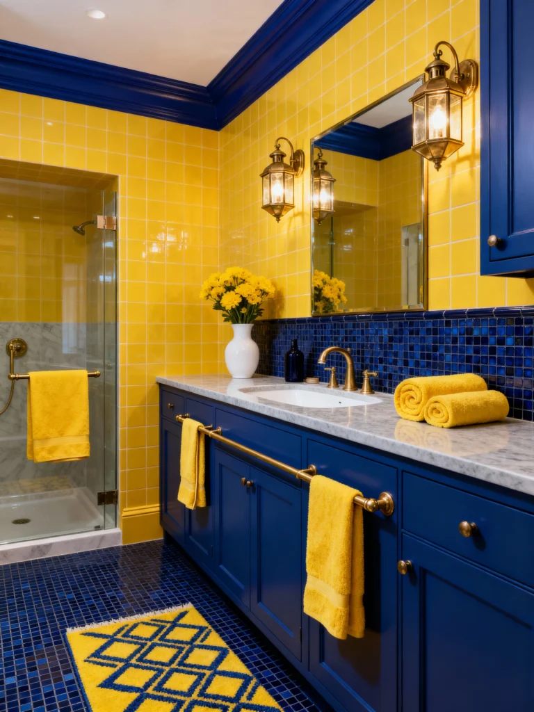 If you’ve been feeling like your bathroom is a bit… well, beige, you’ve come to the right place. We’re diving deep into the world of cobalt blues and sunny yellows. This color combo is the ultimate “mood booster”—it’s like stepping into a Mediterranean vacation every time you brush your teeth.I’ve rounded up 10 stunning spaces that show exactly how to pull off this daring duo, whether you’re into vintage vibes or sleek modern lines. Let’s get inspired!