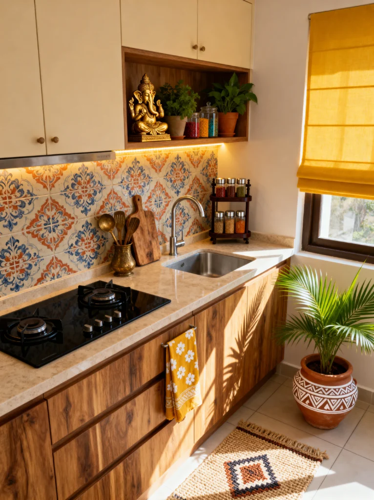 This space is a masterclass in bringing personality and heritage into a functional room. The first thing that hits you is that stunning patterned tile. It’s bold, it’s intricate, and it instantly makes the kitchen feel like a piece of art. When you pair that with the warm, rich wood grain of the lower cabinets, you get a vibe that is incredibly soulful.