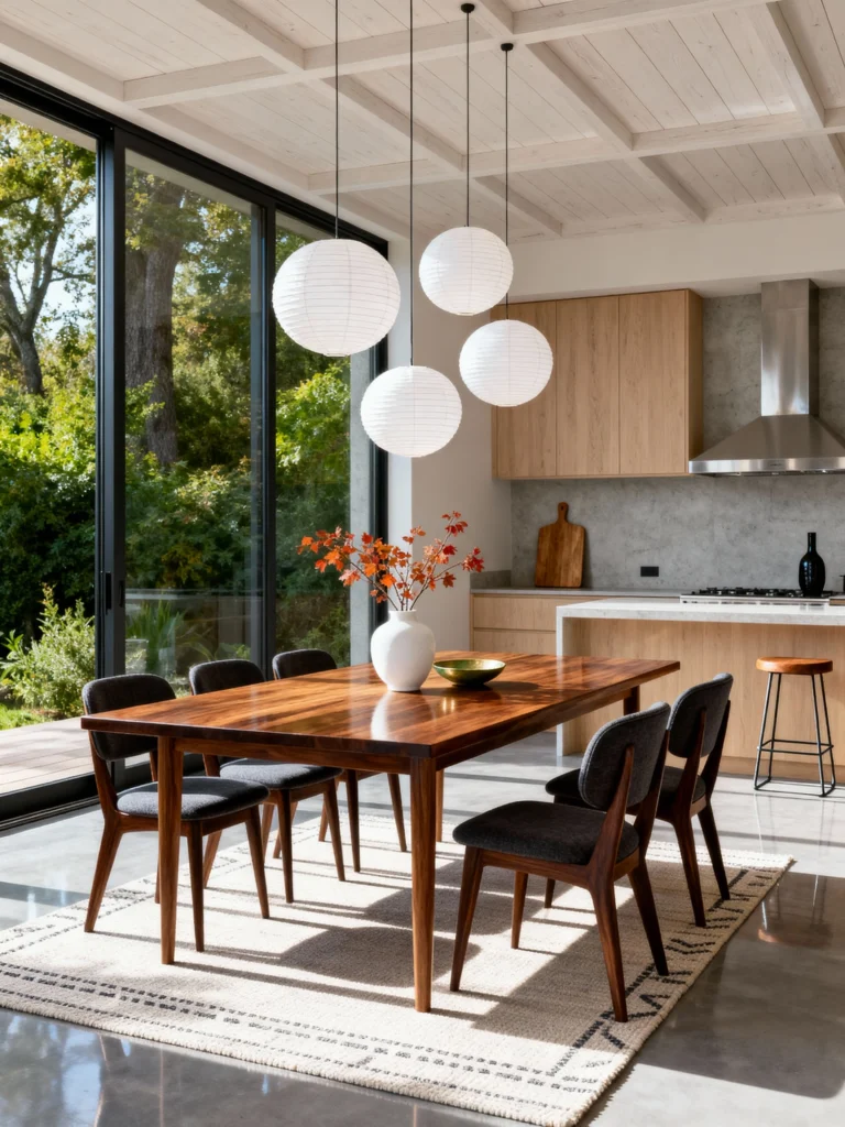 If you have big windows and a lot of natural light, you have to lean into it. This room is all about that indoor-outdoor flow. Those three paper globe pendants are such a classic move—they’re light, they’re inexpensive, and they create a beautiful, diffused glow that doesn’t compete with the view outside.