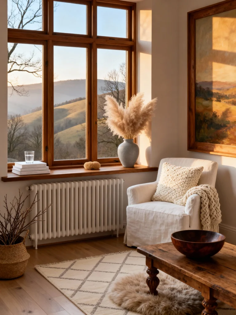 This corner feels like it belongs in a cozy cottage in the English countryside, but updated for 2026. It’s all about the light hitting those rolling hills through the window. It’s incredibly peaceful.