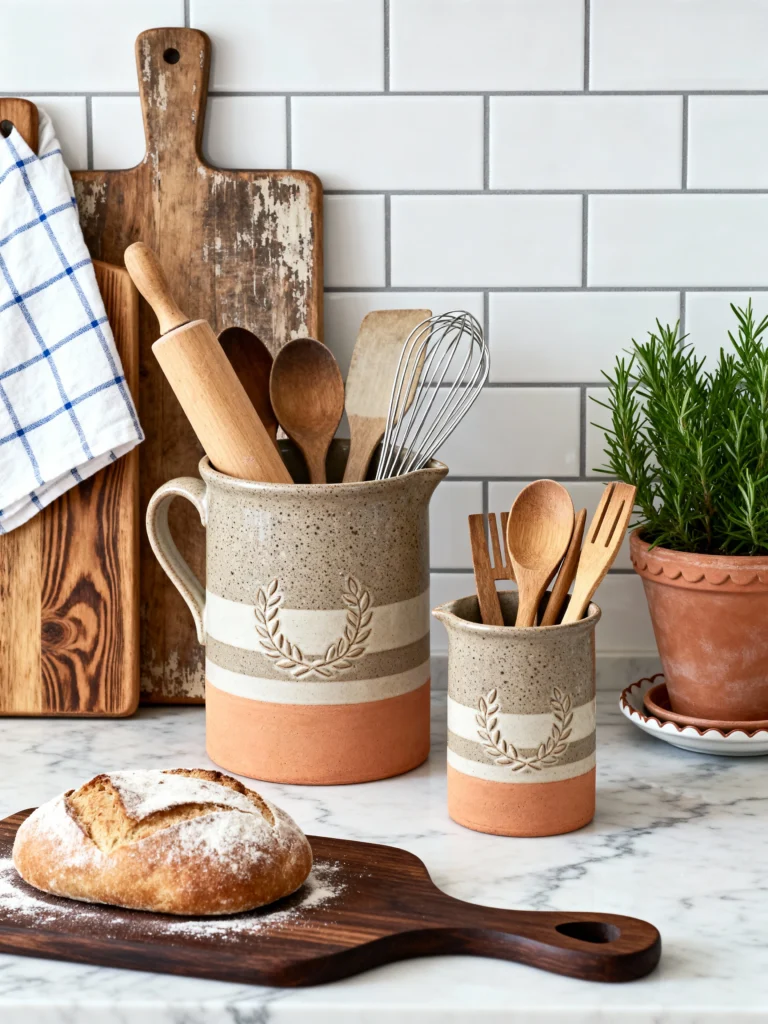 I love seeing these used for kitchen tools. Putting your wooden spoons, whisks, and rolling pins in a beautiful ceramic jar instead of a plastic bin changes the whole energy of your countertop. It makes the kitchen feel less like a chore-zone and more like a creative studio.