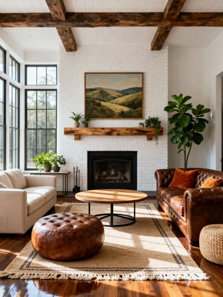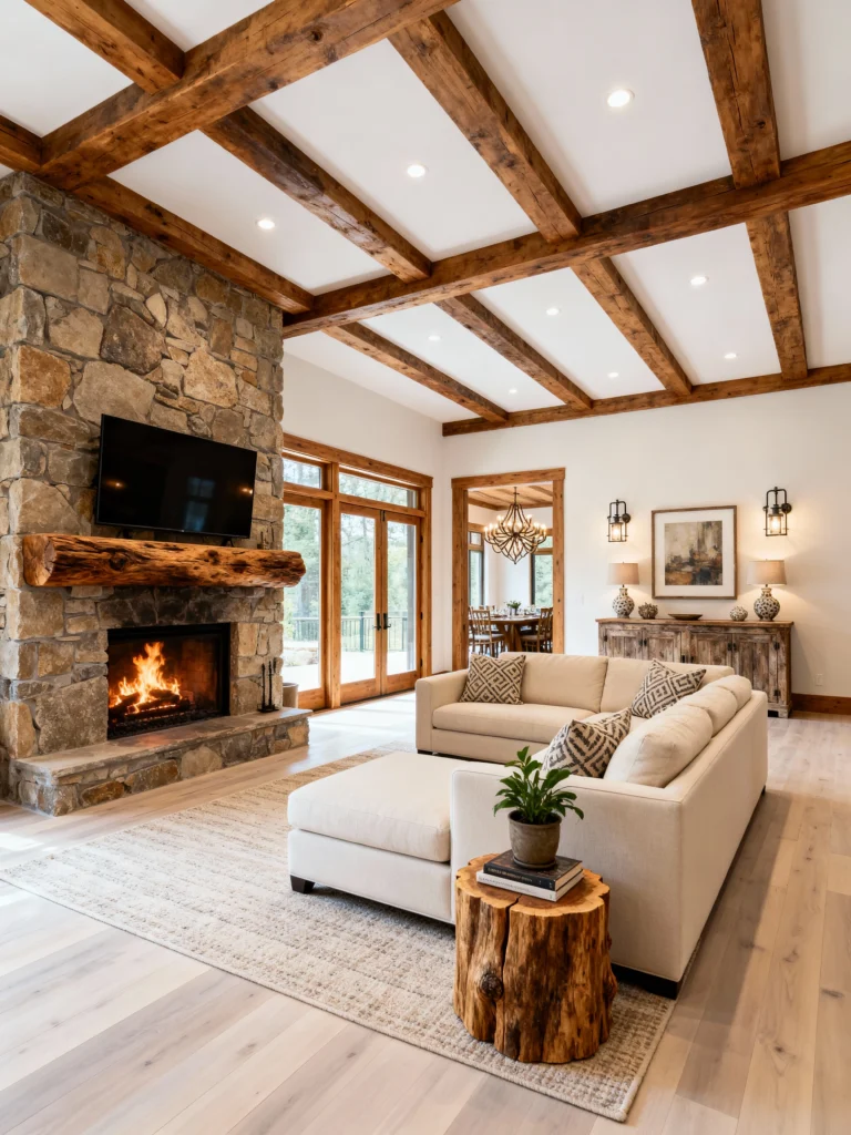 Today, we’re breaking down 20 incredible spaces that nail the Modern Rustic aesthetic. We’re talking chunky wood beams, stones that look like they were plucked from a mountain stream, and enough cozy textiles to make you want to hibernate until 2027. Grab a coffee, and let’s go on a room-by-room tour.
