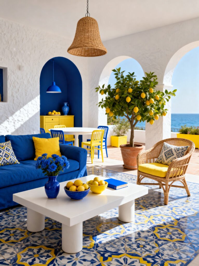 Can you even look at this photo without smiling? This terrace is pure joy! It feels like a sunny afternoon in Positano. The color combo of that deep, vibrant cobalt blue and the bright lemon yellow is just iconic. It’s bold, it’s energetic, and it’s perfect for an outdoor space where you want to host friends and have a great time.