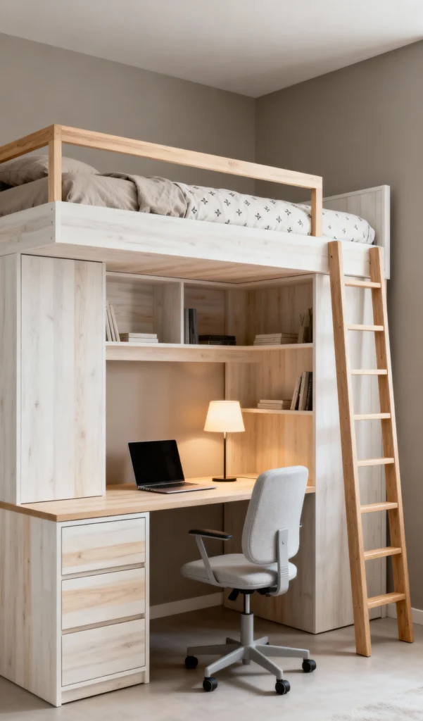 Then you know the struggle of trying to fit a comfy bed, a functional desk, and maybe even some storage into one cozy space. Well, get ready to be inspired! We’ve rounded up some of the cleverest loft bed setups that turn that vertical space you’ve been ignoring into the ultimate multi-functional zone. From sleek, modern looks to cozy cabin vibes, these designs prove you don’t have to sacrifice style for square footage. Check out these genius ideas for a workspace and sleep sanctuary all in one!
