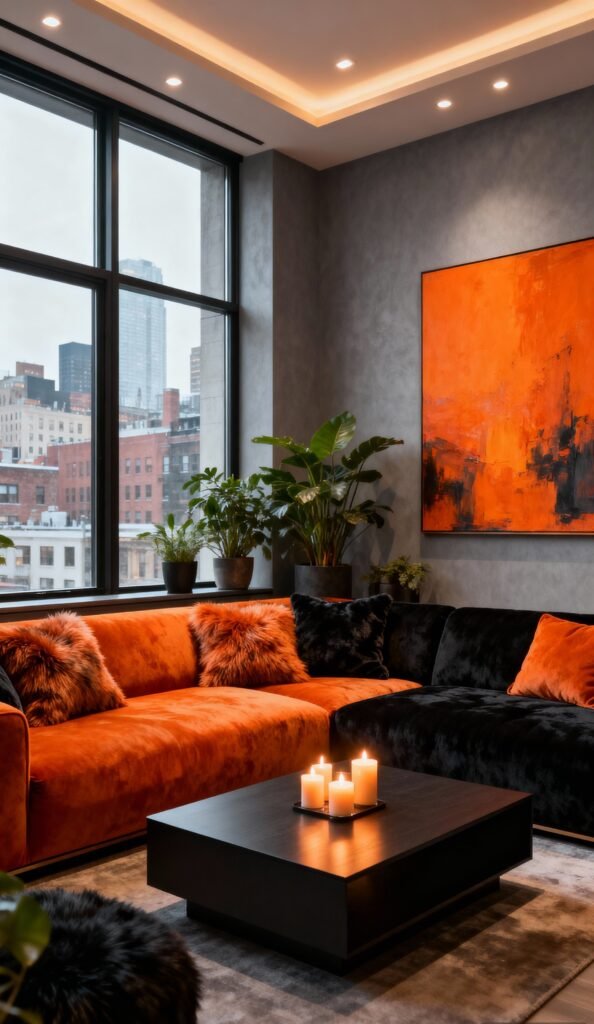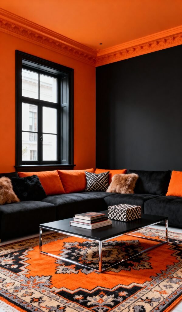 Dramatic Black & Orange Living Room Ideas for a Bold Statement.