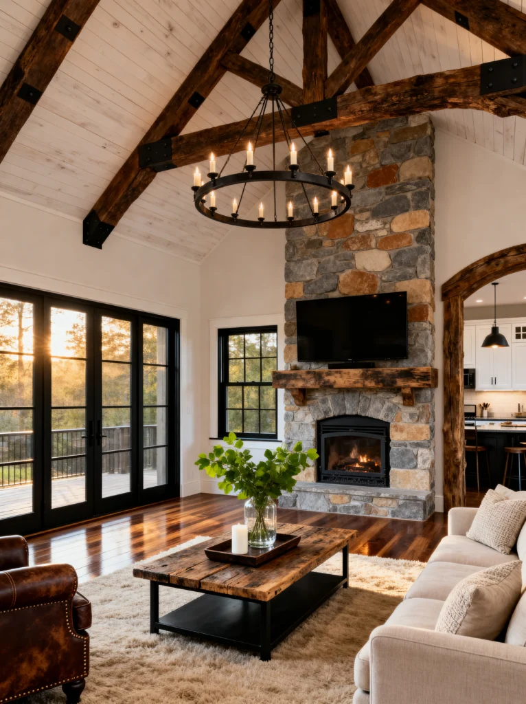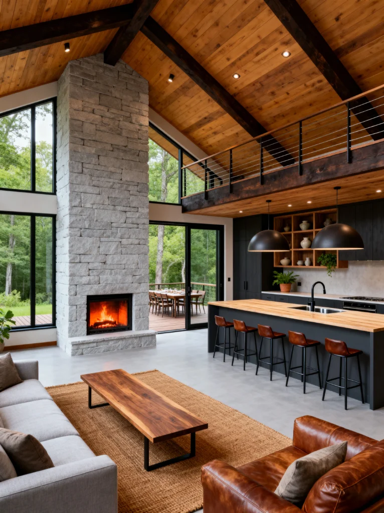 I’ve pulled together eight of the most stunning spaces that prove you don’t have to choose between a “cabin in the woods” vibe and a “luxury penthouse” feel. We’re talking soaring ceilings, massive windows, and enough stone and wood to make you feel like you’re living in a high-def nature documentary. Grab a coffee, settle in, and let’s walk through these dreamy rooms together!
