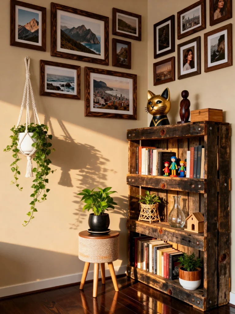 This corner is for the soul. There’s something so charming about using reclaimed materials like that pallet-style bookshelf. It gives the room an industrial, DIY edge that feels really authentic. It’s not trying too hard to be perfect, and that’s why it works.