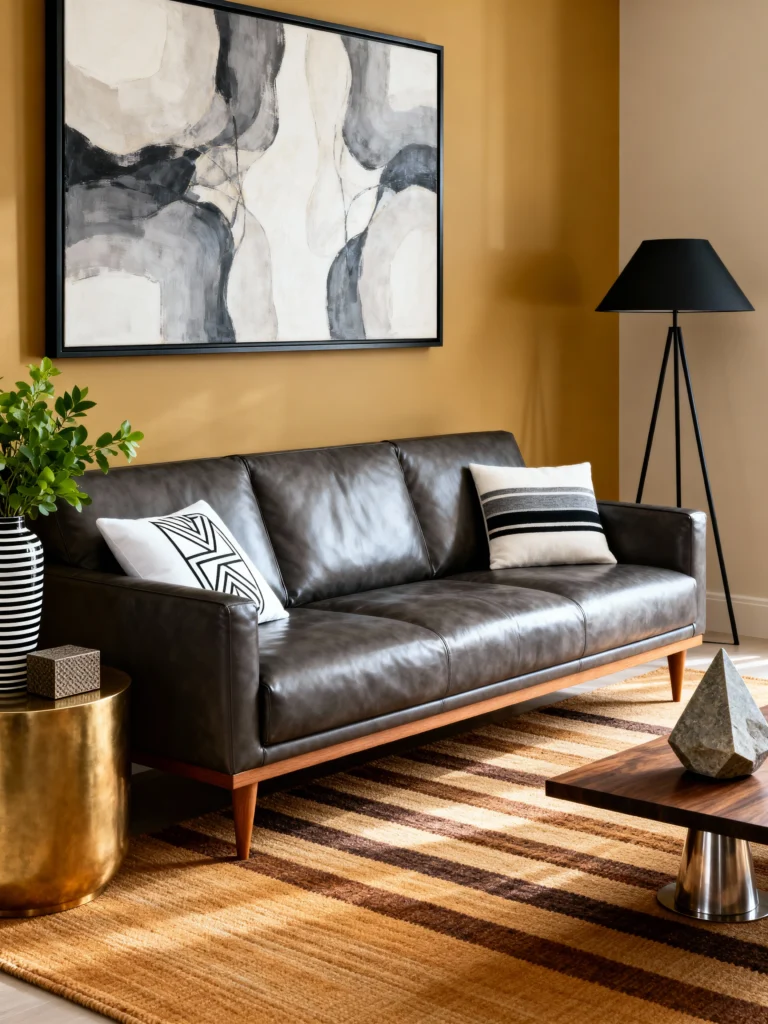 Warmth is the name of the game here! That mustard-yellow wall is such a bold move, but it pays off beautifully. It makes the dark leather sofa and the wooden accents feel so cozy. The striped rug grounds the whole look and ties the earth tones together. This is a great example of how to use “warm” colors to make a room feel inviting and sunny, even on a cloudy day. It’s like a permanent hug from a room.