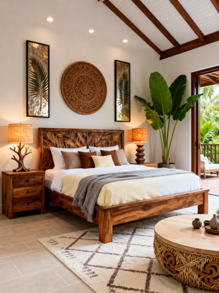 Have you ever wanted to turn your bedroom into the ultimate escape—a place that feels both cozy and exotic? We’re diving deep into the Bohemian Tropical style today, and trust me, it’s all about natural textures, warm wood tones, and bringing the outside in with gorgeous greenery. From macrame wall hangings to rattan accents and chunky knit throws, these ten bedrooms are packed with inspiration to help you create your own everyday sanctuary. Let’s take a look at how to get that dreamy, relaxed vibe!